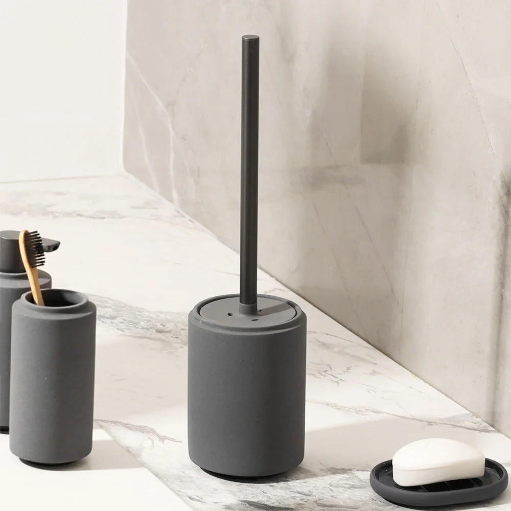 De Blomus Creto toiletborstel in de kleur Magnet is een stijlvolle en minimalistische toevoeging aan iedere badkamer of toiletruimte. De combinatie van donkergrijs beton en een donkere RVS steel zorgt voor een moderne, stoere uitstraling. Met een hoogte van 41 cm en een diameter van 11 cm heeft deze toiletborstelhouder een slank en ruimtebesparend ontwerp.