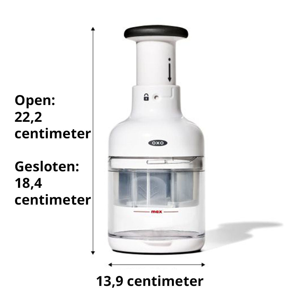 Maak het hakken van uien, knoflook, noten en meer eenvoudiger dan ooit met de OXO Good Grips Groentehakker. Dankzij het unieke ontwerp met ronddraaiende messen bereik je in een paar drukken een perfect en gelijkmatig resultaat, zónder dat ingrediënten aan de rand blijven kleven. Ideaal voor dagelijks gebruik en ontworpen voor ultiem gebruiksgemak.