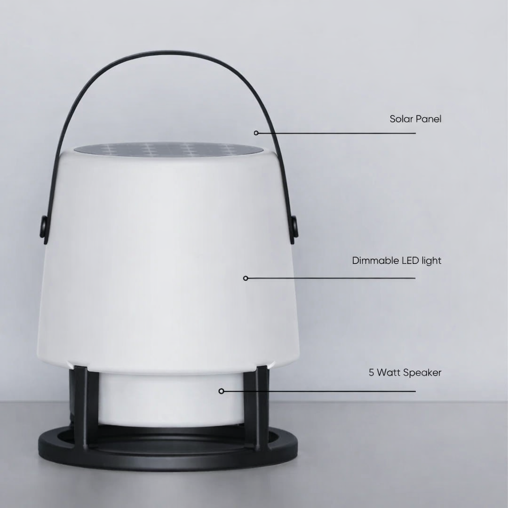 De Kooduu Open Air speaker lamp is perfect voor iedereen die op zoek is naar een design Bluetooth speaker, sfeerlamp voor buiten, of een duurzame solar lamp met speaker. Ideaal voor lange zomeravonden, gezellige diners of als stijlvol cadeau.