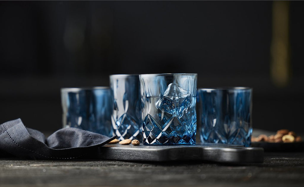 Lyngby Glas Sorrento Whiskyglazen Blauw - 4 stuks