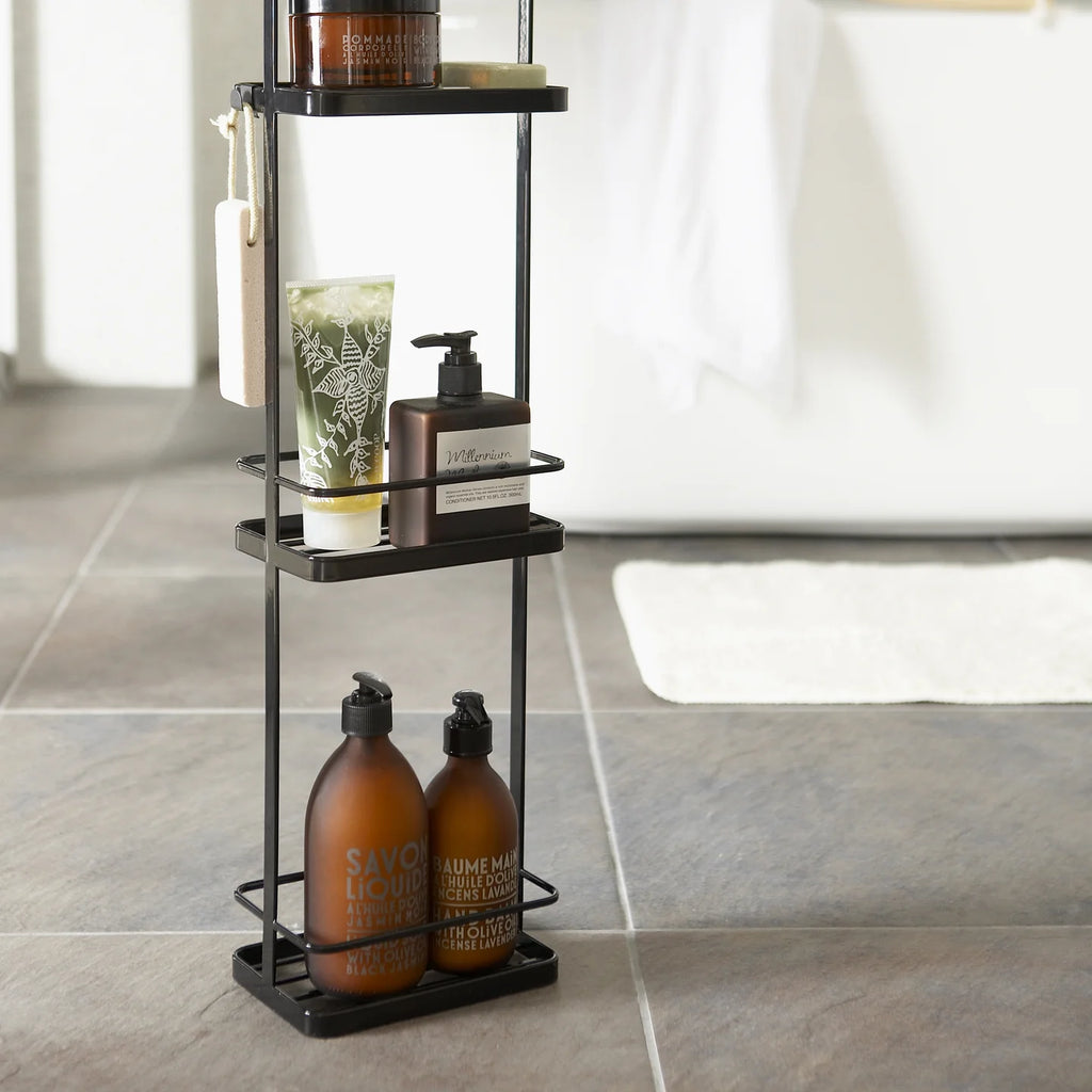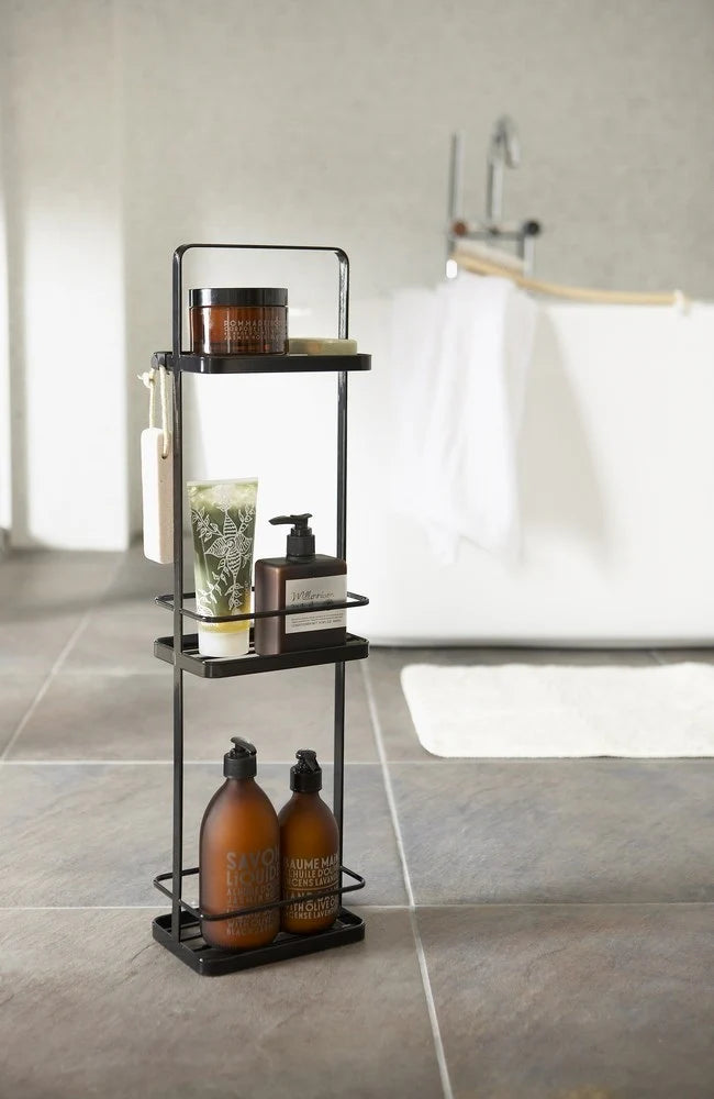 Het Yamazaki Tower badkamerrek in zwart is de perfecte oplossing voor wie weinig opbergruimte nodig heeft, maar wel waarde hecht aan een strak en stijlvol design. Dit slanke, metalen opbergrek is voorzien van drie compacte plankjesen biedt voldoende ruimte voor kleine toiletartikelen zoals flacons, potjes en accessoires.