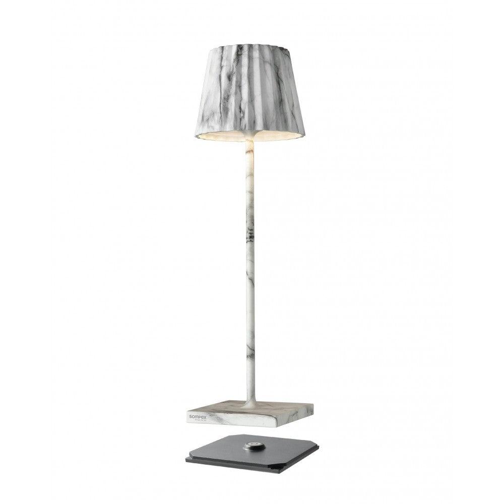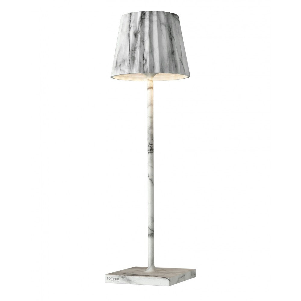 De Sompex TROLL 2.0 buitenlamp – 38 cm in wit marmerlook is een stijlvolle en veelzijdige designlamp die moeiteloos sfeer brengt in zowel binnen- als buitenruimtes. Met zijn herkenbare, minimalistische vormgeving en elegante marmerlook is deze lamp een echte blikvanger op terras, balkon, in de tuin of in huis.