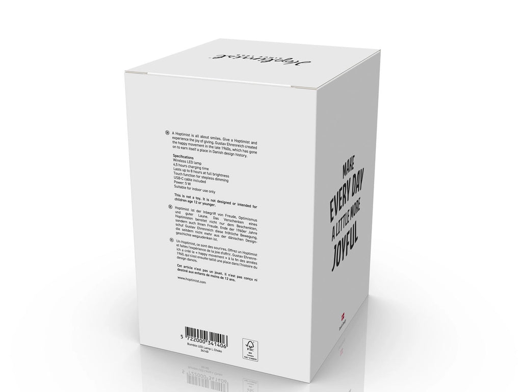 Opladen gaat eenvoudig via USB-C. Na volledig opladen biedt de lamp tot 8 uur draadloos gebruik. De combinatie van functionaliteit, comfort en het herkenbare speelse design maakt deze Hoptimist lamp tot een echte blikvanger én een ideaal cadeau.