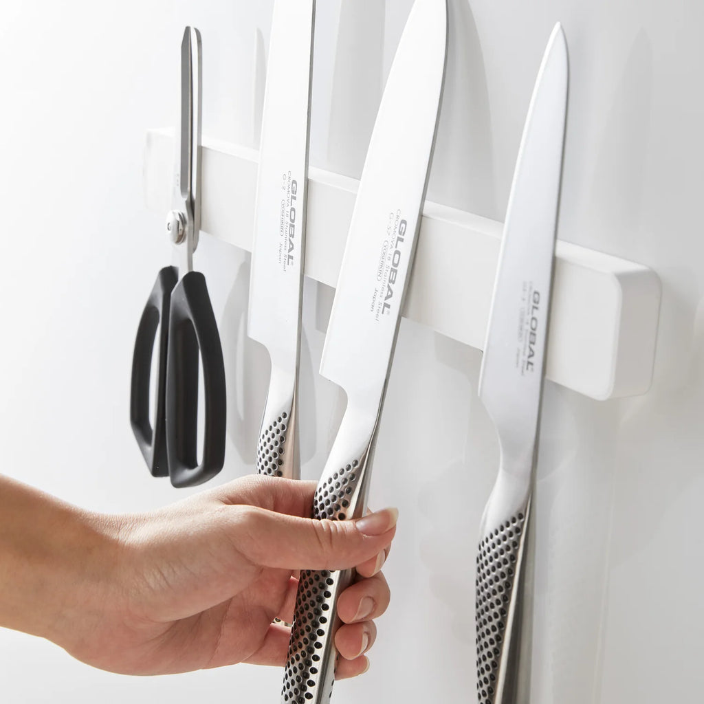 Hou je keuken strak, veilig en overzichtelijk met de Yamazaki magnetische messenhouder in wit. Deze slimme wandhouder is ontworpen volgens de Japanse principes van minimalisme en functionaliteit. De houder biedt ruimte voor maximaal 5 keukenmessen of tools, en bespaart tegelijkertijd kostbare ruimte op je aanrecht.